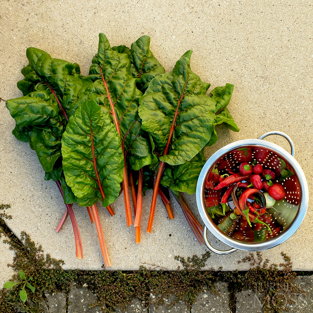 The most surprising aspect of this past month’s garden was the Rainbow Chard. At the beginning of the season, I casually sprouted some seeds, then eventually planted them in a pot that was way too small. I didn’t have any expectations for them to do well and I didn’t really pay too much attention to them aside from watering them along with the rest of the plants. Well, September was a good month for the Rainbow Chard sprouts, they became the most vibrant vegetables of the bunch. By October, the Chard miraculously sprung up and grew into these gorgeous rainbow veined leafy greens, nearly 2 feet tall! What an abundant treat!