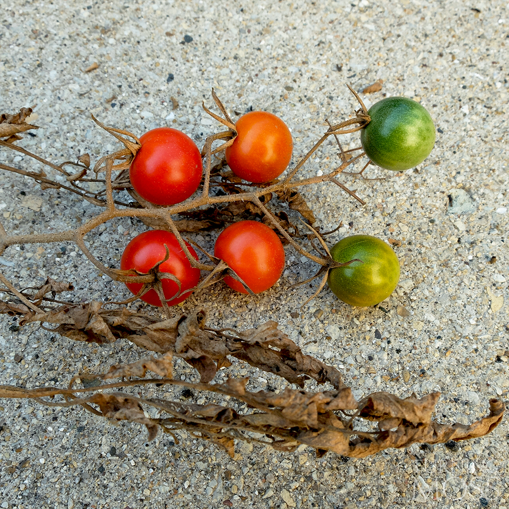 The Cherry Tomatoes were some of the first plants to die off this year, however the Grape Tomatoes planted across the way were started a bit later and ended up doing quite well towards the end of the season. They’re still going strong well into October and have sprawled on to neighboring bushes. I didn’t have any stakes to hold them up, so they figured out the best way to support their crazy growth spurt, nature is cool like that.