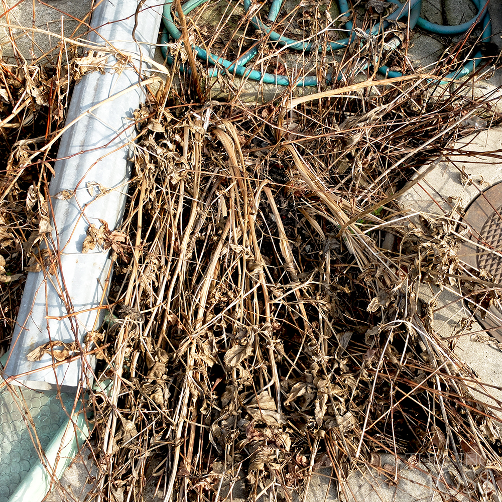 One last image from the clean-up…. the “Easter” eggs… ugh. Looks like a magical Easter scene, doesn’t it? Well- I don’t know. It’s a bit of a mystery, I found 6 perfectly placed full chicken eggs laying around the yard. I know they have been there for a couple (few) months and I can’t be entirely sure how they got there, still perfectly intact. I’m guessing city rats have something to do with it, but imaging a rat retrieving these eggs and successfully placing them around the yard like this… I don’t know, can they do that? Whatever the case may be, the eggs had to go along with the other scraps.