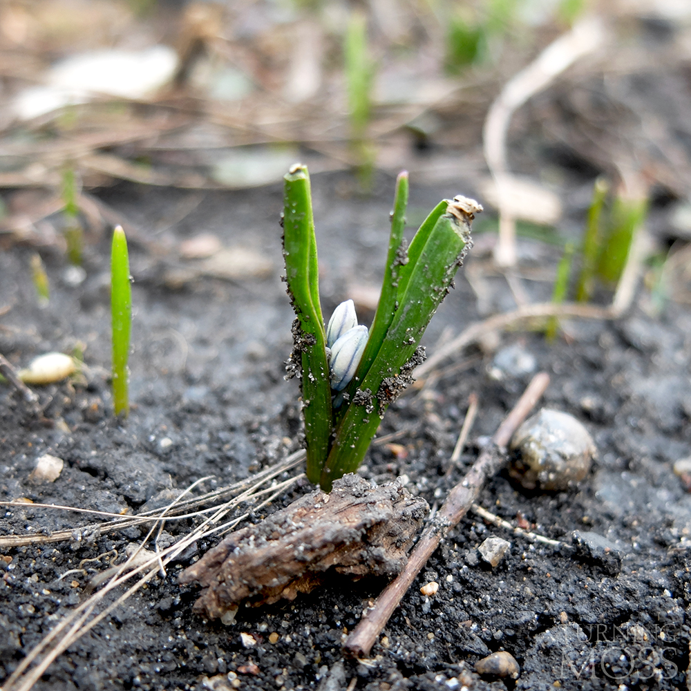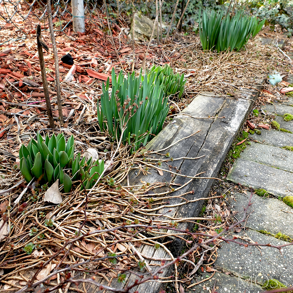 Even if I skipped the spring cleaning, the plants would find their way through the debris. But with just a little bit of help clearing out the old, these small sprouts will have a much easier time growing up. Here is a whole bunch of Glory of the Snow ‘Chionodoxa’ sprouts that were uncovered.