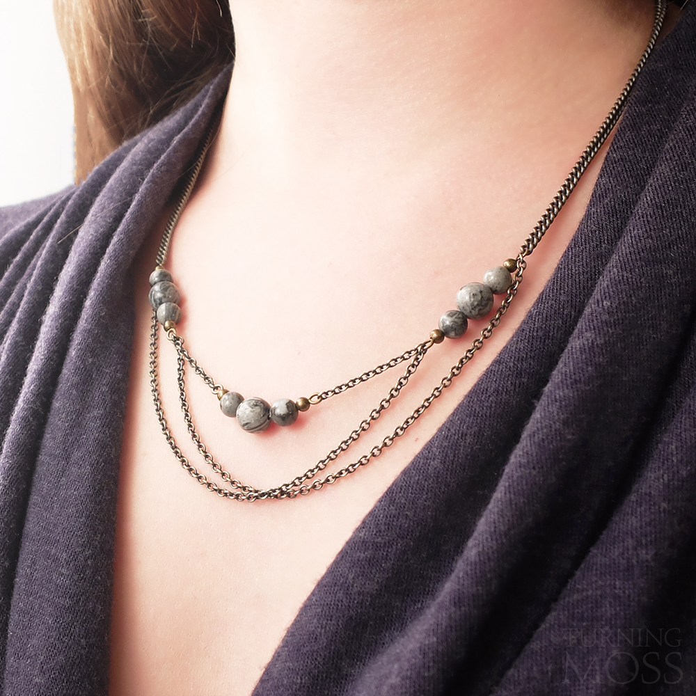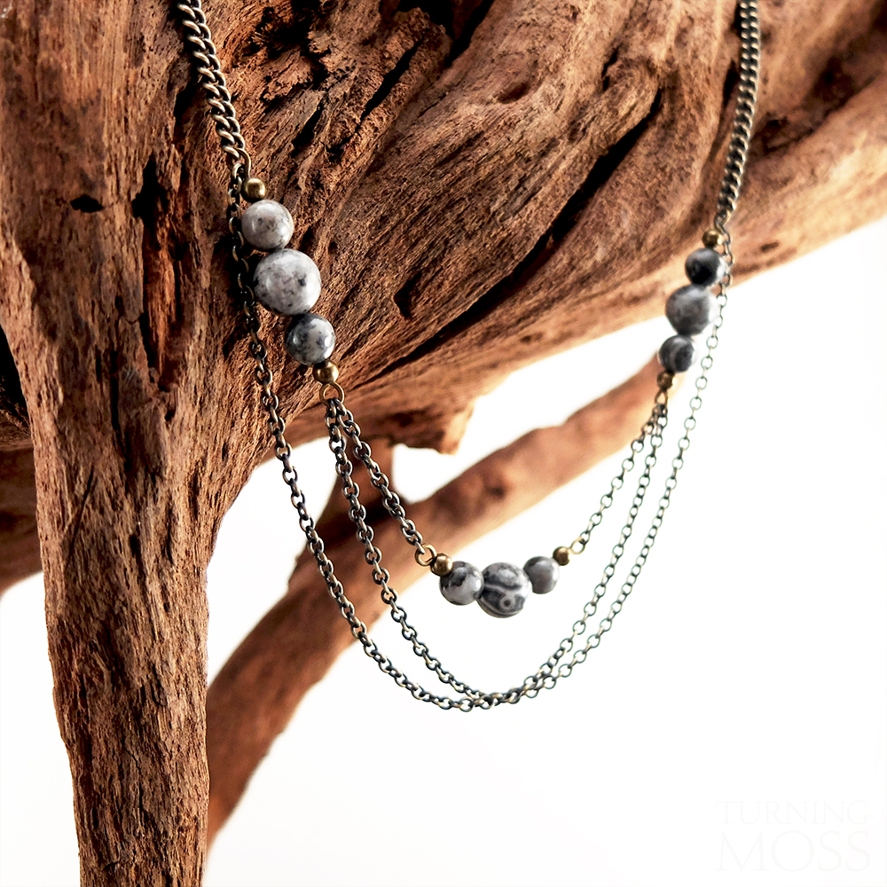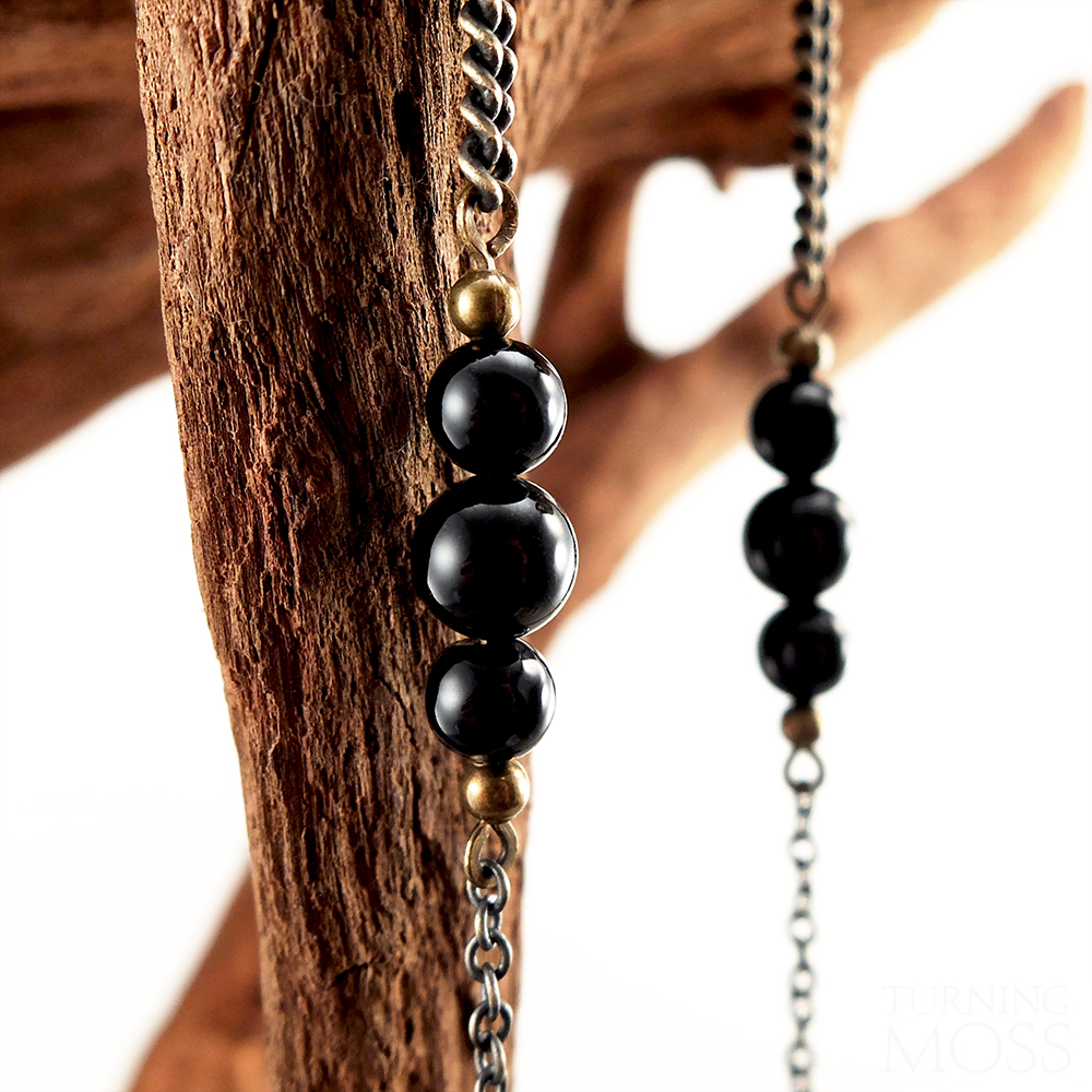 The Maplewood Collection has your bases covered. Whether you want to dress up or dress down, the Maplewood Necklaces are versatile enough for any occasion. Three bars of beads are divided by chain, select the simple option or go for a more dramatic look with draping chain. Which ever way you choose, you are sure to put a lot of miles on these adornments.