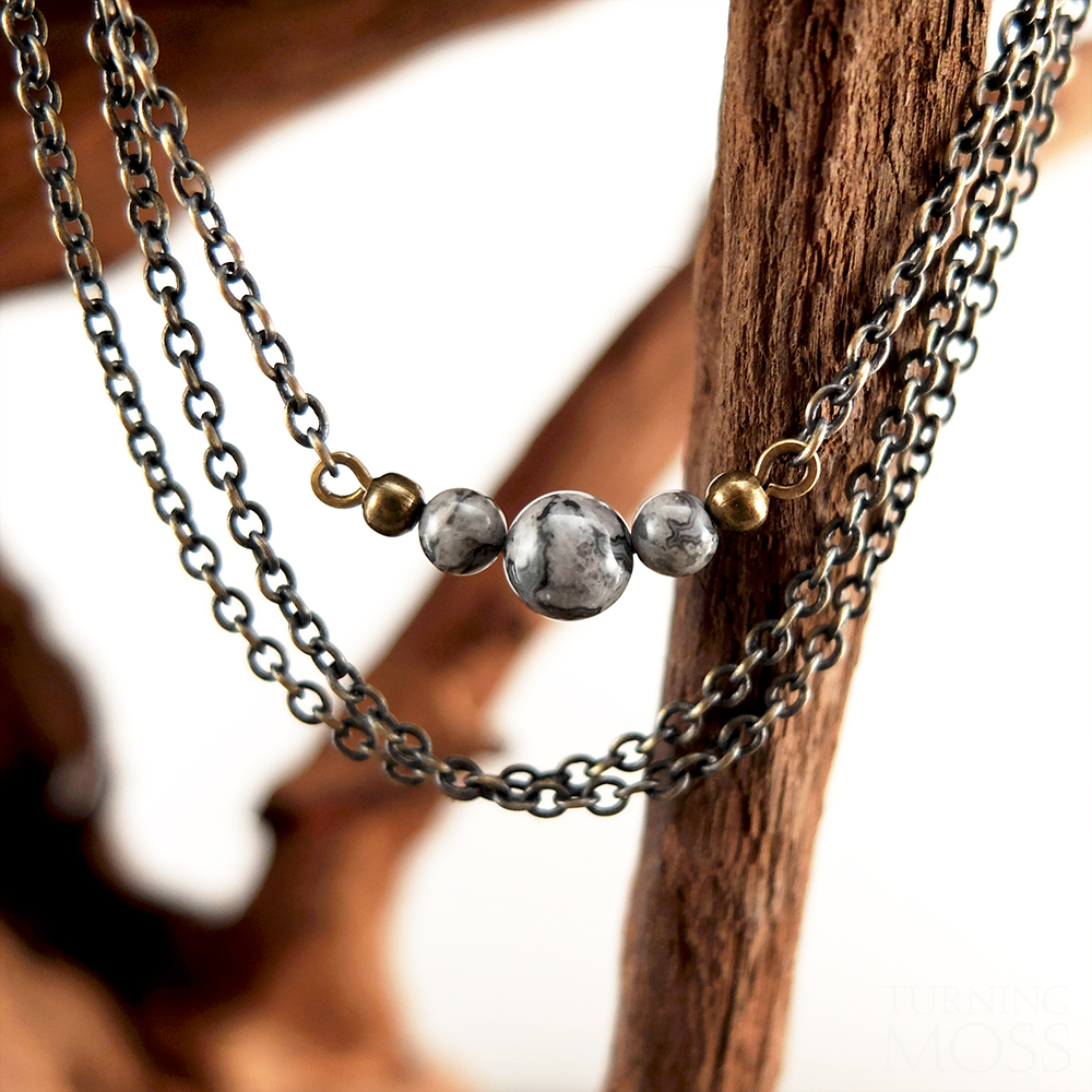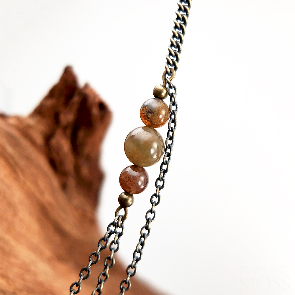 The Maplewood Collection has your bases covered. Whether you want to dress up or dress down, the Maplewood Necklaces are versatile enough for any occasion. Three bars of beads are divided by chain, select the simple option or go for a more dramatic look with draping chain. Which ever way you choose, you are sure to put a lot of miles on these adornments.