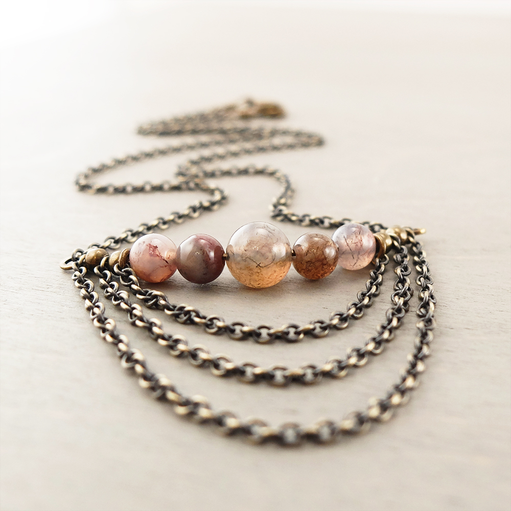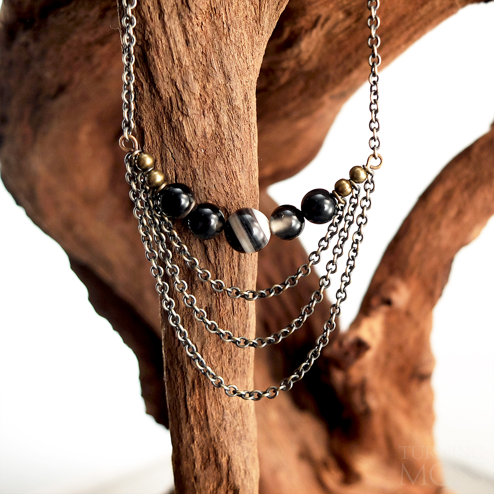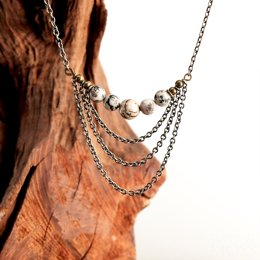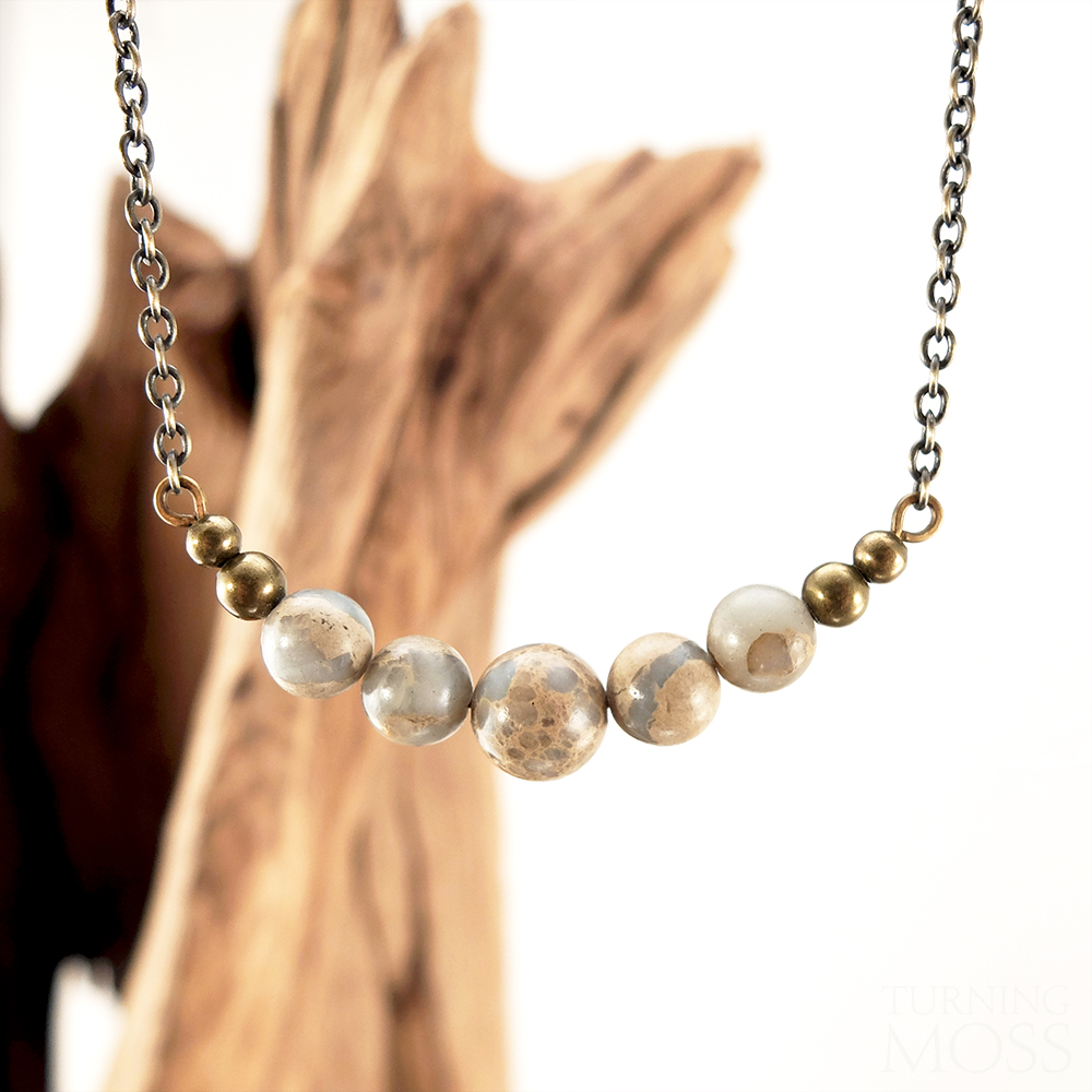 The Walton Collection is focused on an elegantly curved bar of beads, while some styles in this collection are draped with chain, some styles are kept simple allowing the beads to shine on their own. This minimalist style necklace is comfortable and effortless to wear. The 18” length works well with a variety of necklines making it the perfect fit for most.